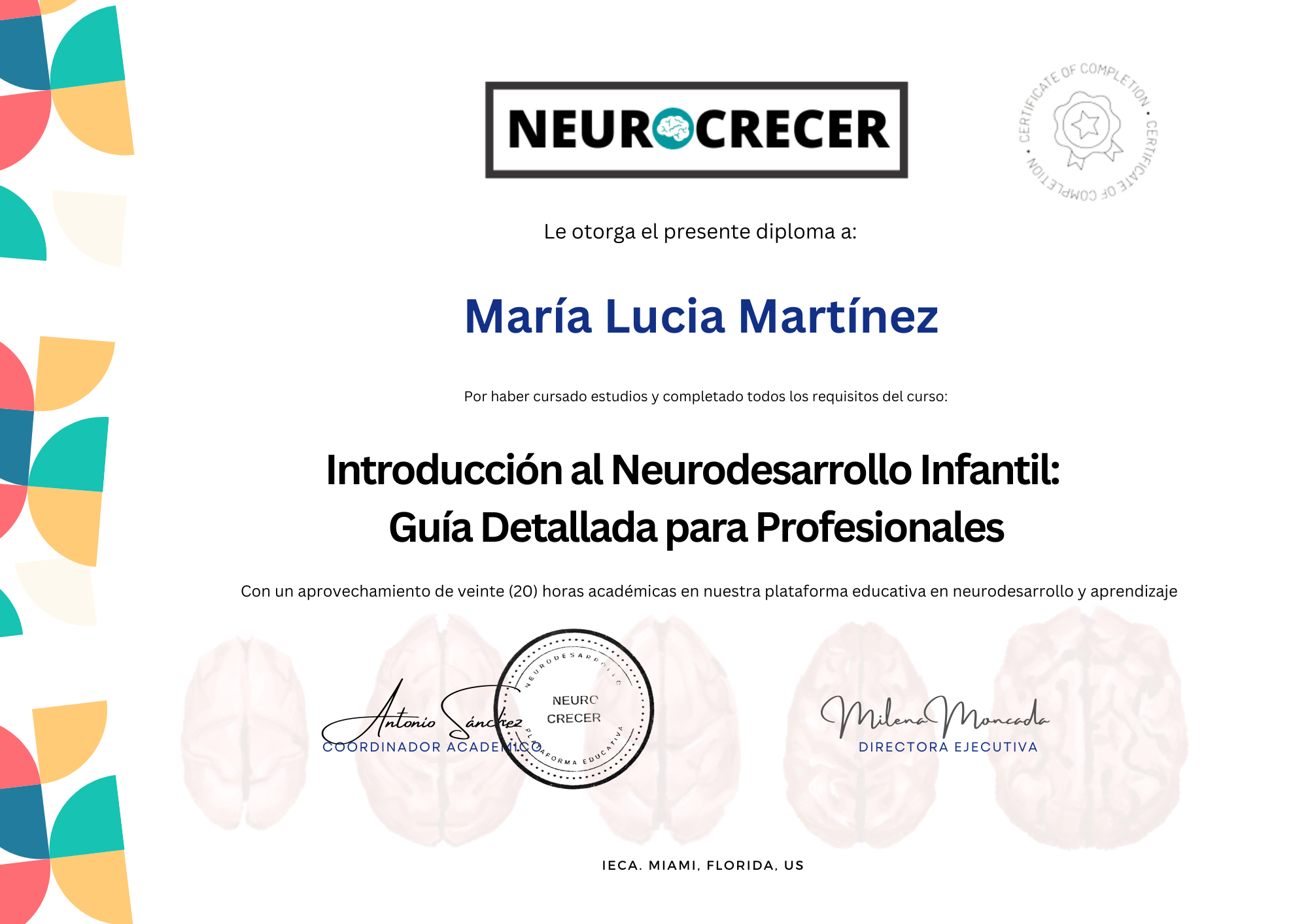 Sumérgete en el fascinante mundo del neurodesarrollo infantil con nuestro curso asincrónico, diseñado para explorar y reflexionar sobre los procesos neurológicos y su impacto en el desarrollo psicológico y social de los niños. A través de videos, material complementario y actividades interactivas, adquirirás una comprensión profunda de este crucial período de crecimiento y aprendizaje.