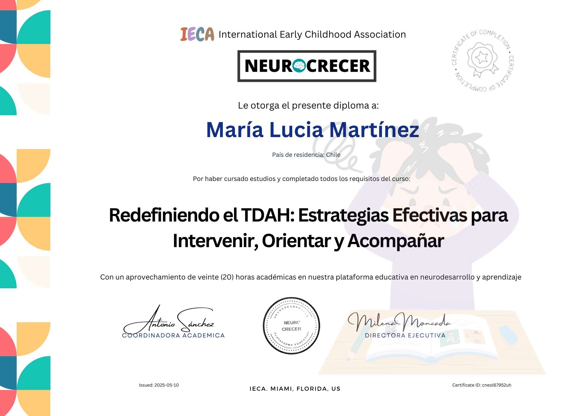 Sumérgete en un curso asíncrono diseñado para brindarte un entorno de análisis y reflexión profunda sobre la intervención en el TDAH en la población pediátrica. A través de una combinación de videos, material complementario y actividades interactivas, adquirirás conocimientos y herramientas prácticas para mejorar la calidad de la intervención psicoeducativa en niños, niñas y adolescentes con TDAH.